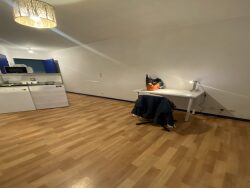 Meublé et prêt à vivre : lit, bureau, table, chaises, kitchenette équipée, rangements, etc.