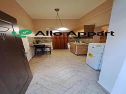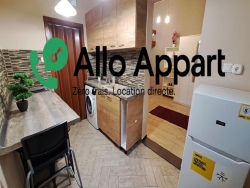 L'appartement se trouve en rez-de-chaussée. Il comprend une pièce de vie avec canapé, table basse, étagère, une belle hauteur sous plafond avec une mezzanine aménagée en coin nuit (lit double), la cuisine est équipée (plaques, four, frigo, machine à laver, coin repas), et une salle de bain avec baignoire et meuble vasque.