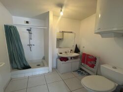 Appartement de type T1bis comprenant : une entrée, une pièce de vie avec cuisine équipée (plaques électriques, hotte, évier) et aménagée (meubles haut et bas), une chambre, une salle d'eau avec WC. Libre le 17/07/2026