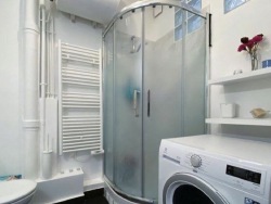 ? Une salle de bain avec douche , WC et lave linge