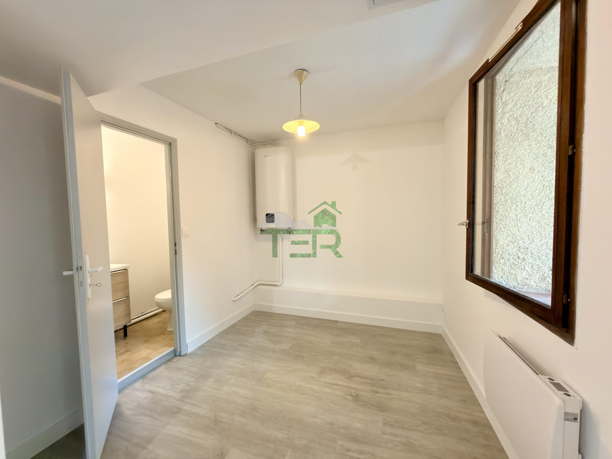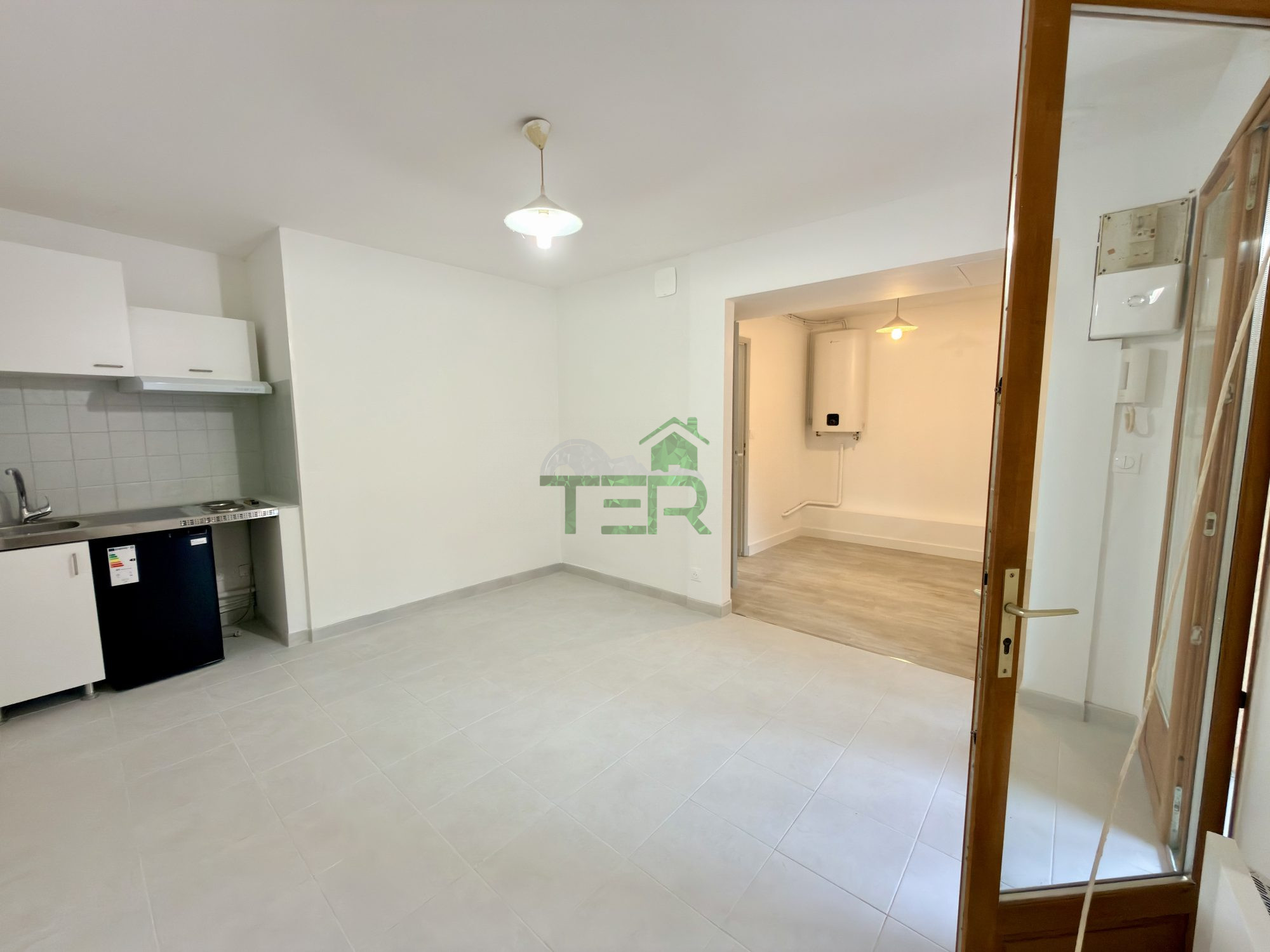 Il se compose d'une pièce principale avec un grand placard et un coin cuisine avec évier, plaques de cuisson et frigo. En continu de la pièce vous trouverez une chambre (sans fenêtre) et une salle de bain avec WC séparé.