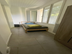 Il est d'une cuisine ouverte sur le séjour qui donne sur une petite pièce côté jardin, une salle d'eau, WC et une grande chambre.