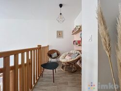 Il offre un bel espace de vie baigné de lumière d'environ 35 m2 avec salon, séjour, cuisine ouverte entièrement équipée, ainsi qu'une entrée, un espace buanderie avec rangements et WC sur le premier niveau. L'étage distribue une chambre, un dressing, une salle de douche et un pallier aménagé en coin lecture/jeux pouvant également être aménagé en bureau.