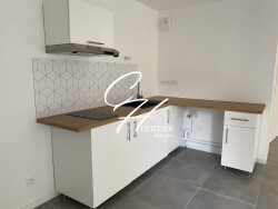 La cuisine neuve, fonctionnelle et moderne, est entièrement aménagée (éléments de rangements bas) et équipée (plaque de cuisson vitrocéramique 2 feux, une hotte). Elle dispose également d'un emplacement pour y brancher un lave vaisselle ou une machine à laver.
