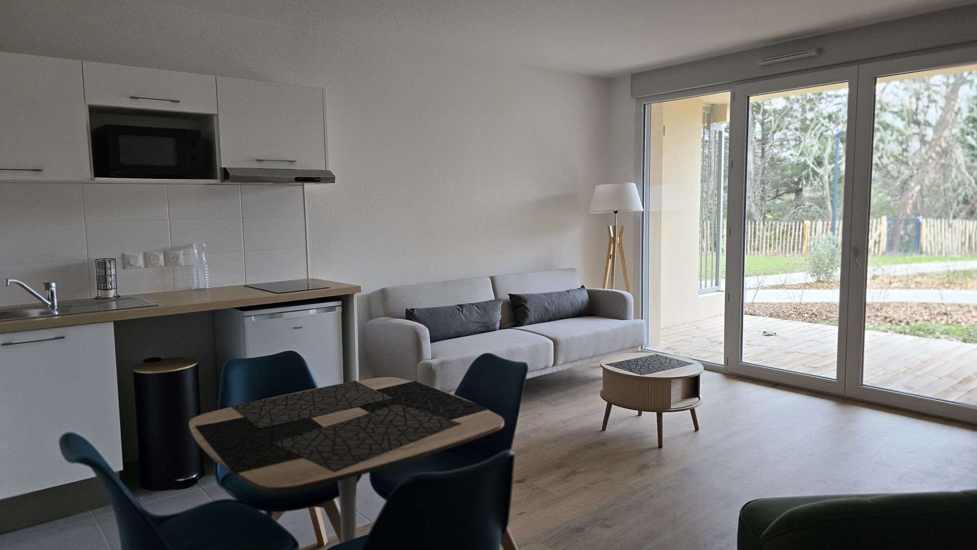 Contactez notre agent commercial Madame TUNE Margaux au 06x26x71x16x63 ou par mail : margaux.tune@sngextensia.com pour visiter cet appartement T2 situé au RDC de 41.88 m² avec une terrasse de 6.03 m² et un jardin de 25m². Un séjour donnant sur une cuisine équipée d'un plan de travail, évier, plaque de cuisson, four, réfrigérateur table top, meubles. Une chambre. Une salle d'eau avec WC. Deux places de parking privatives.