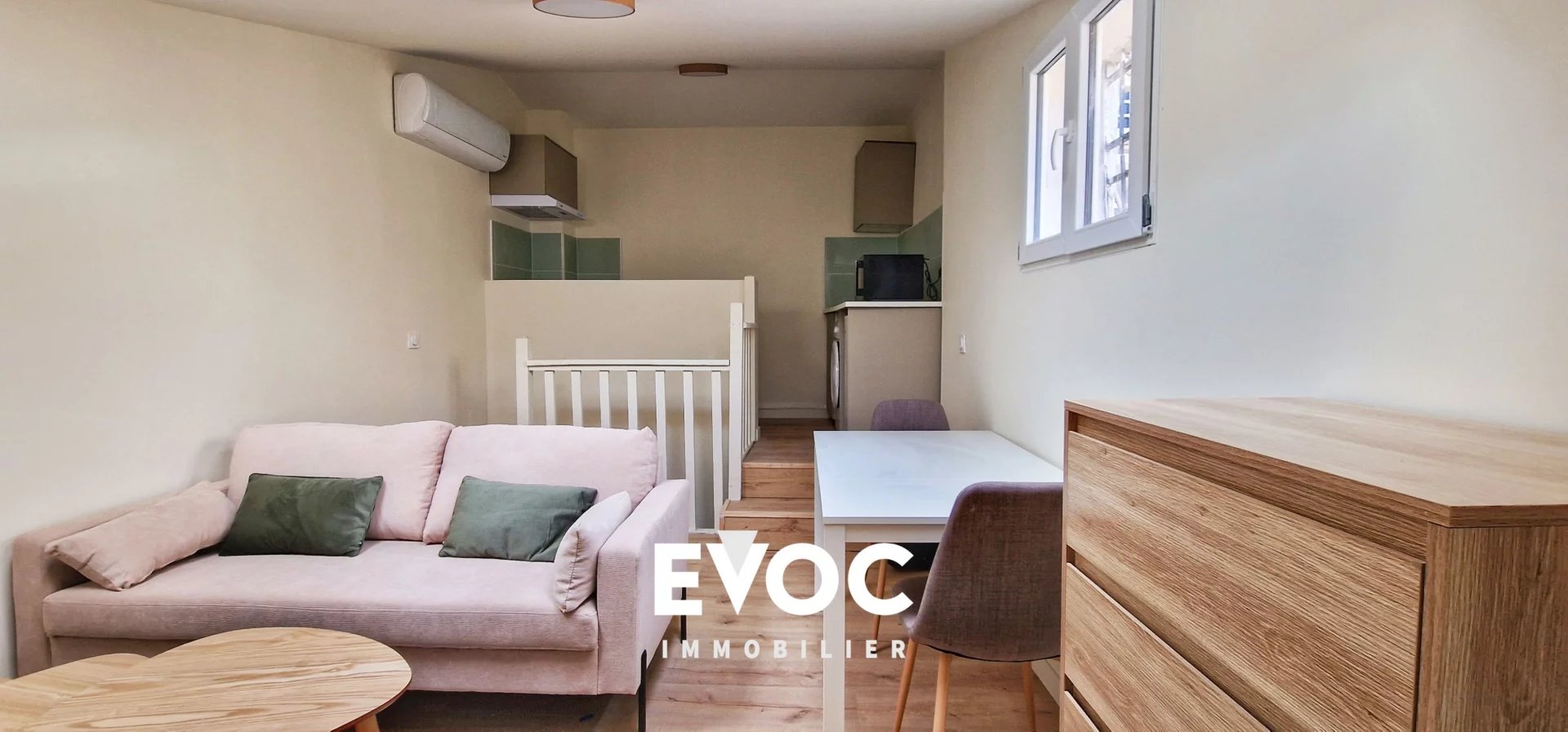 ...Cuisine ouverte sur séjour spacieux, 2 chambres, salle de bains et WC séparés...