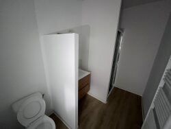 Appartement T2 bis au 1er étage dans un petit immeuble sans ascenseur comprenant: Entrée dans séjour/cuisine aménagée et équipée (plaque de cuisson + hotte), buanderie, salle d'eau avec wc, un bureau et une chambre. Deux petits balcons donnant sur la rue. Libre de suite.