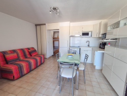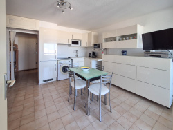 LE GRAU DU ROI : dans la résidence Le Lagon Bleu, au dernier étage avec ASCENSEUR, venez découvrir ce très beau T2 cabine de 6 couchages en parfait état général vendu avec un CELLIER et une place de PARKING sécurisée. Il se compose d'une entrée avec un espace cabine, d'un séjour agréable et lumineux, d'une cuisine équipée moderne, d'une chambre avec placard intégré, d'une salle d'eau neuve avec douche et rangements, d'un wc séparé et d'une loggia avec une jolie vue dégagée. La résidence est sécurisée, bien entretenue et bénéficie d'une piscine avec 2 bassins. Le ravalement de façades a été fait en 2023. Les + : vendu meublé, volets roulants électriques, machine à laver, nombreux placards, cellier sur le palier de l'appartement, place de parking ombragée... A visiter sans hésiter ! Vous pouvez me joindre au 06.31.29.69.88 pour plus de renseignements.