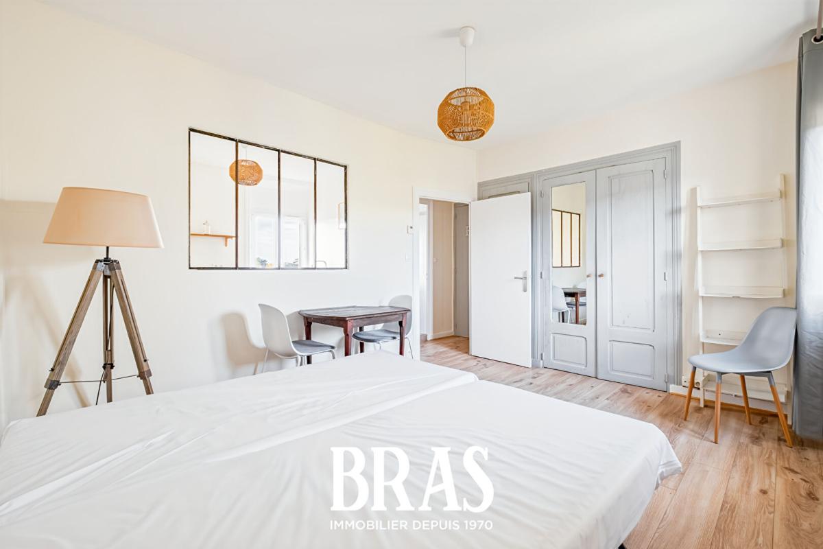 EXCLUSIVITE. Au 1 er étage d'une résidence en plein coeur de ville, appartement en très bon état de type 2 de 29 m2 ( 34 m2 utiles) en duplex, offrant une pièce de vie très lumineuse avec coin cuisine, à l'étage un palier, une chambre avec coin buanderie et rangement, une salle d'eau avec WC. Une cave dans le jardin commun de la copropriété.