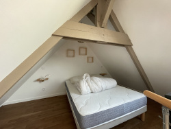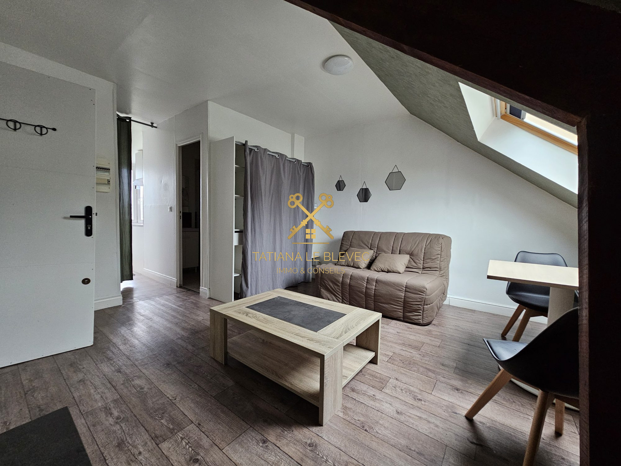 A LOUER en meublé T2 en duplex au dernier étage d'un immeuble de 6 logements, proche bus et centre de HENNEBONT. Loyer : 530 EUR / mois charges comprises (eau froide, chauffage et entretien des communs). Electricité à la charge du locataire. Montant des charges :70 EUR / mois. Dépôt de garantie : 460 EUR. DPE du 22/08/2023 classé en D