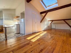 Situé au coeur de l'hyper centre, appartement de type 2 en duplex. Il se compose d'une entrée, d'une pièce principale donnant entèrement côté cour intérieure (très calme), d'une chambre à l'étage (mansardée, on ne s'y tiens pas debout) éclairée par un velux, et d'une salle de bain avec WC. Charme de l'ancien, avec briques apparentes. Coup de coeur assuré.