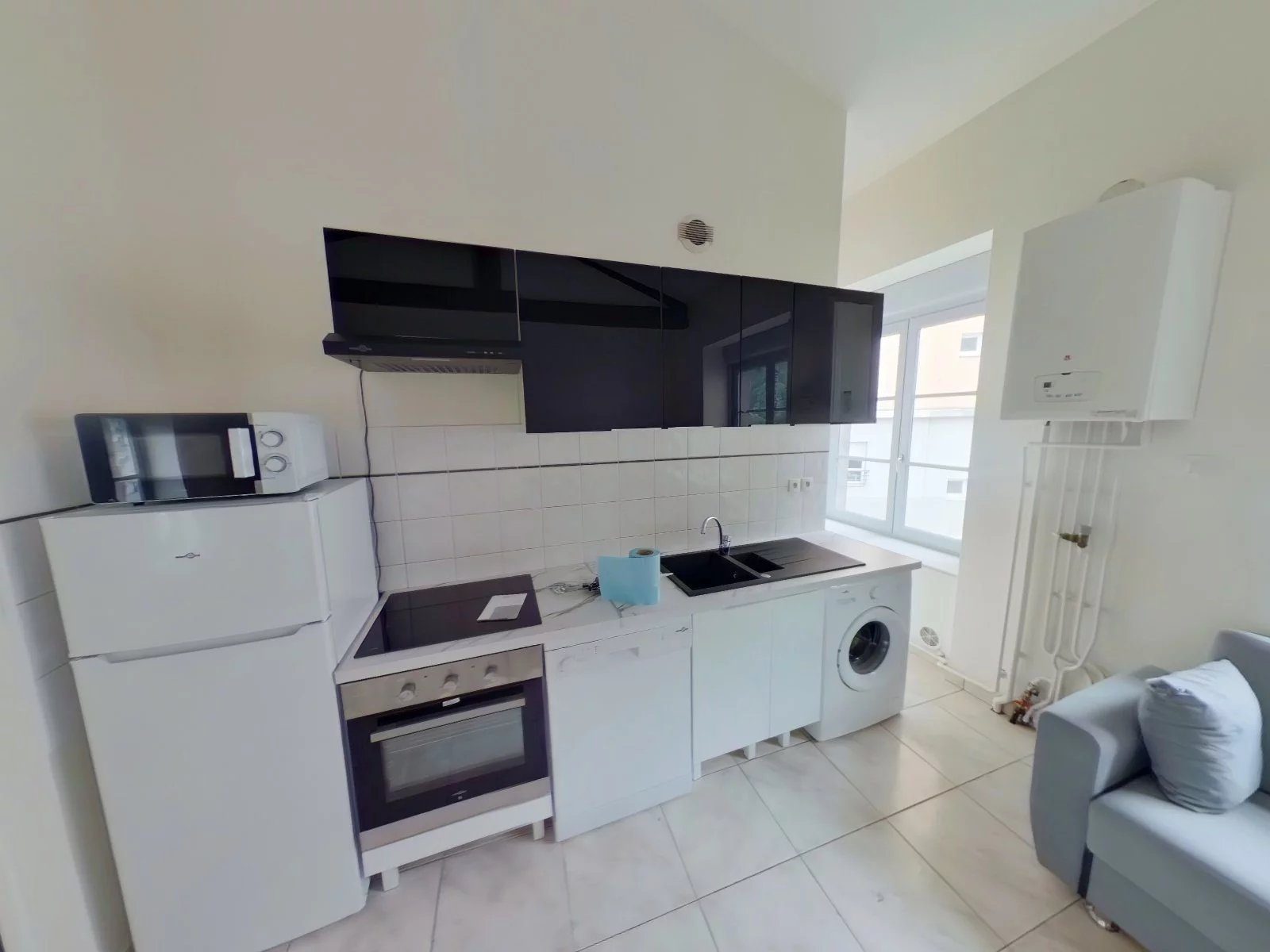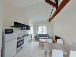 T2 de 47m² en rez de jardin situé 5 place maréchal foch à ST ETIENNE -T2 de 47 m² dans résidence calme et sécurisée -Grand séjour avec cuisine semi équipée -Grande terrasse -Une chambre séparée avec placards -Une salle de bain avec douche et WC, meuble vasque -Chauffage collectif au gaz -Fenêtres en double vitrages -Interphone -Loyer 527 euros + 110 euros de charges (entretien immeuble, chauffage, TEOM)
