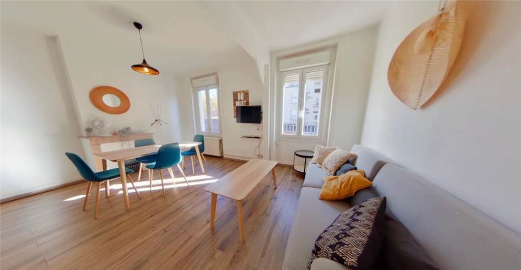 T2 de 47m² en rez de jardin situé 5 place maréchal foch à ST ETIENNE -T2 de 47 m² dans résidence calme et sécurisée -Grand séjour avec cuisine semi équipée -Grande terrasse -Une chambre séparée avec placards -Une salle de bain avec douche et WC, meuble vasque -Chauffage collectif au gaz -Fenêtres en double vitrages -Interphone -Loyer 527 euros + 110 euros de charges (entretien immeuble, chauffage, TEOM)