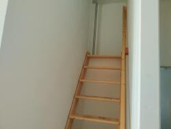 L'appartement se compose d'un long couloir avec placard desservant un salon avec cuisine aménagée et équipée (plaques de cuisson et hotte), une chambre, ainsi qu'une mezzanine fermée pouvant servir de bureau ou de seconde chambre. Vous trouverez également une salle d'eau et des toilettes séparées.