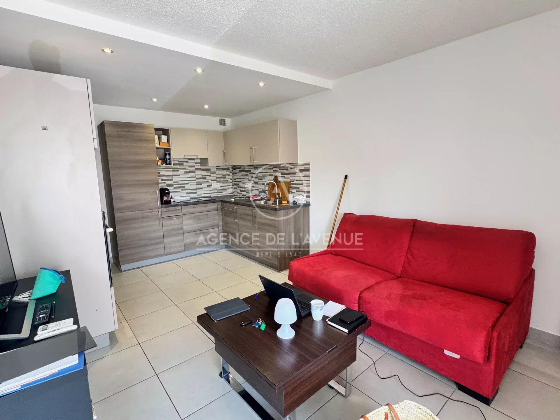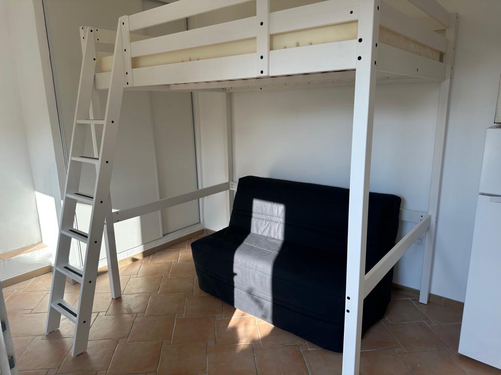 LES SABLETTES - PROCHE DE LA PLAGE APPARTEMENT MEUBLE A LOUER A L'ANNEE AU 1ER ETAGE AVEC ASCENSEUR SALON CUISINE EQUIPEE CHAMBRE OUVERTE SUR SALON SALLE D'EAU LOGGIA 10 M2 PLACE DE PARKING PRIVATIVE 730 ? +70 ? DE CHARGES, EAU FROIDE COMPRISE