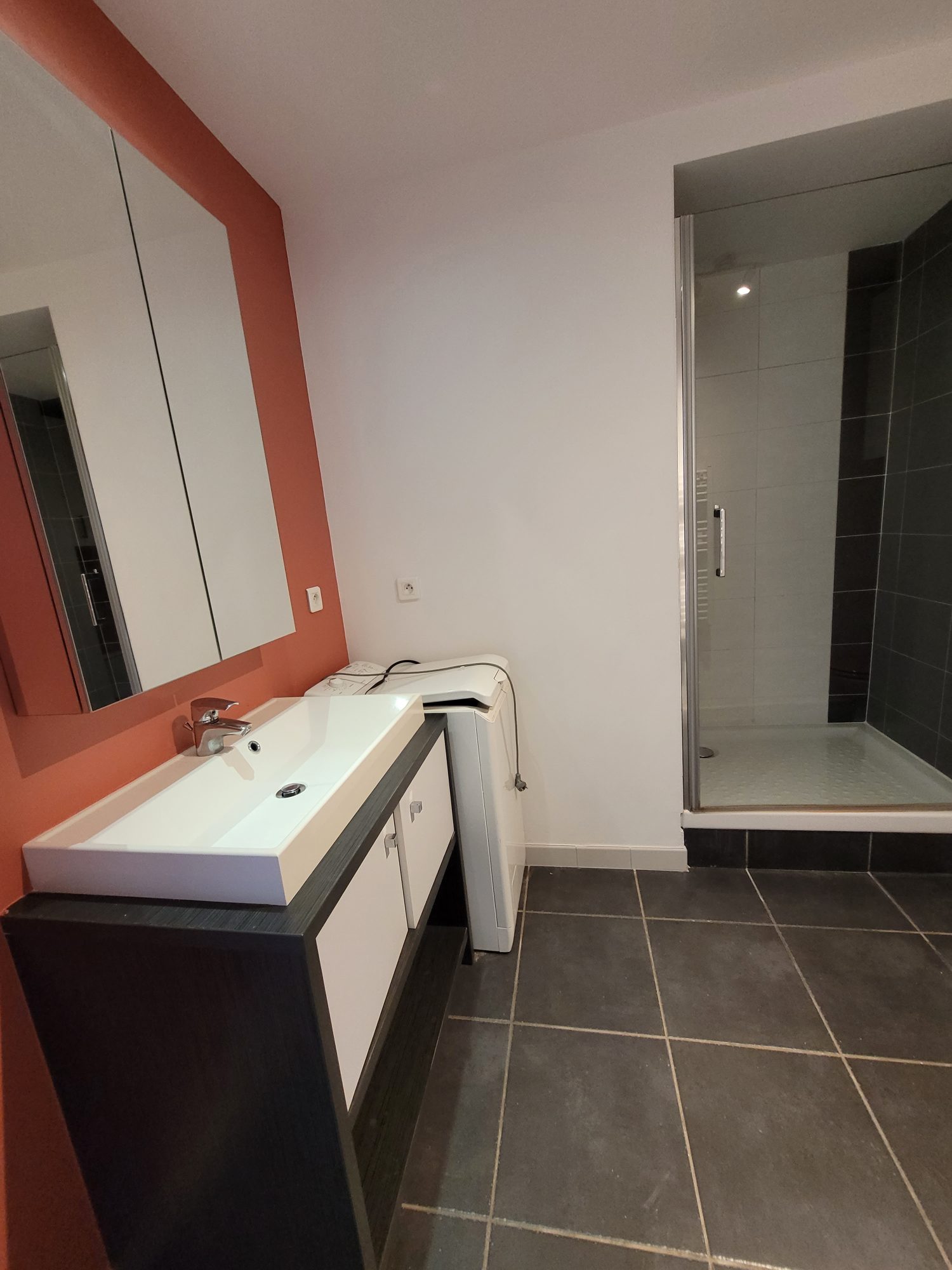 - Entrée avec placard (avec lave-linge) - Séjour avec cuisine aménagée et équipée (frigo, congélateur, plaques, hotte, micro-ondes, machine à café) et donnant sur loggia fermée de 6 m² - Chambre avec placard - Salle d'eau - WC - Garage fermé en sous-sol