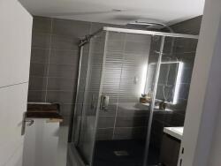 Une salle d'eau moderne équipée d'une machine à laver, des WC séparés complètent ce bien fonctionnel et prêt à vivre.