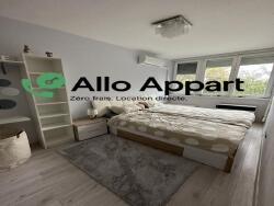 Il se compose d'un salon avec canapé d'angle, table basse, meuble TV et climatisation réversible, un bureau, une armoire. La télé présente sur les photos appartient à l'actuelle locataire, mais j ai negocie pour qu'elle puisse être laissée pour 100 €, si le futur locataire le souhaite.