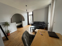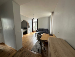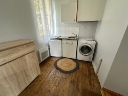 LAVAL, rue Echelle Marteau Appartement type 2 meublé (bail en vide avec prêt de meubles) au 1er étage : entrée, séjour, kitchenette équipée, chambre, salle d'eau, wc. Chauffage individuel électrique. Eau individuelle. Lave Linge. Libre le 1ER MAI 2026 Loyer : 450 EUR cc (+ EAU + ELECTRICITE)