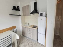 T2 meublé tout confort et lumineux, situé au 1er étage un grand balcon contournant. Idéalement situé dans un quartier calme et proche de la plage. Récemment rénové. Il est composé d' un coin cuisine équipée avec plaque de cuisson, réfrigérateur et micro-onde,(pas de lave-linge), d'une chambre avec lit en 140, d'une salle d'eau avec douche + toilettes. Place de parking privative devant le logement. Arrêt de bus à proximité. APPARTEMENT NON FUMEUR Disponible à partir de octobre 2025. Visites faites uniquement après dépôt de dossier. LOYER: 470? + CHARGES (eau, ordures ménagères): 30? SOIT 500?/MOIS, hors électricité CAUTION: 940? HONORAIRES AGENCE LOCATAIRE: 266? Pour plus de renseignements contactez l'agence ORPHEA LC IMMOBILIER au 04 68 320 320, choix n°2 Dépôt de dossier par mail : marina@orpheaimmo.com
