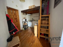 Dans une petite copropriété, appartement comprenant : une pièce à vivre avec coin cuisine équipée, une mezzanine , une chambre.