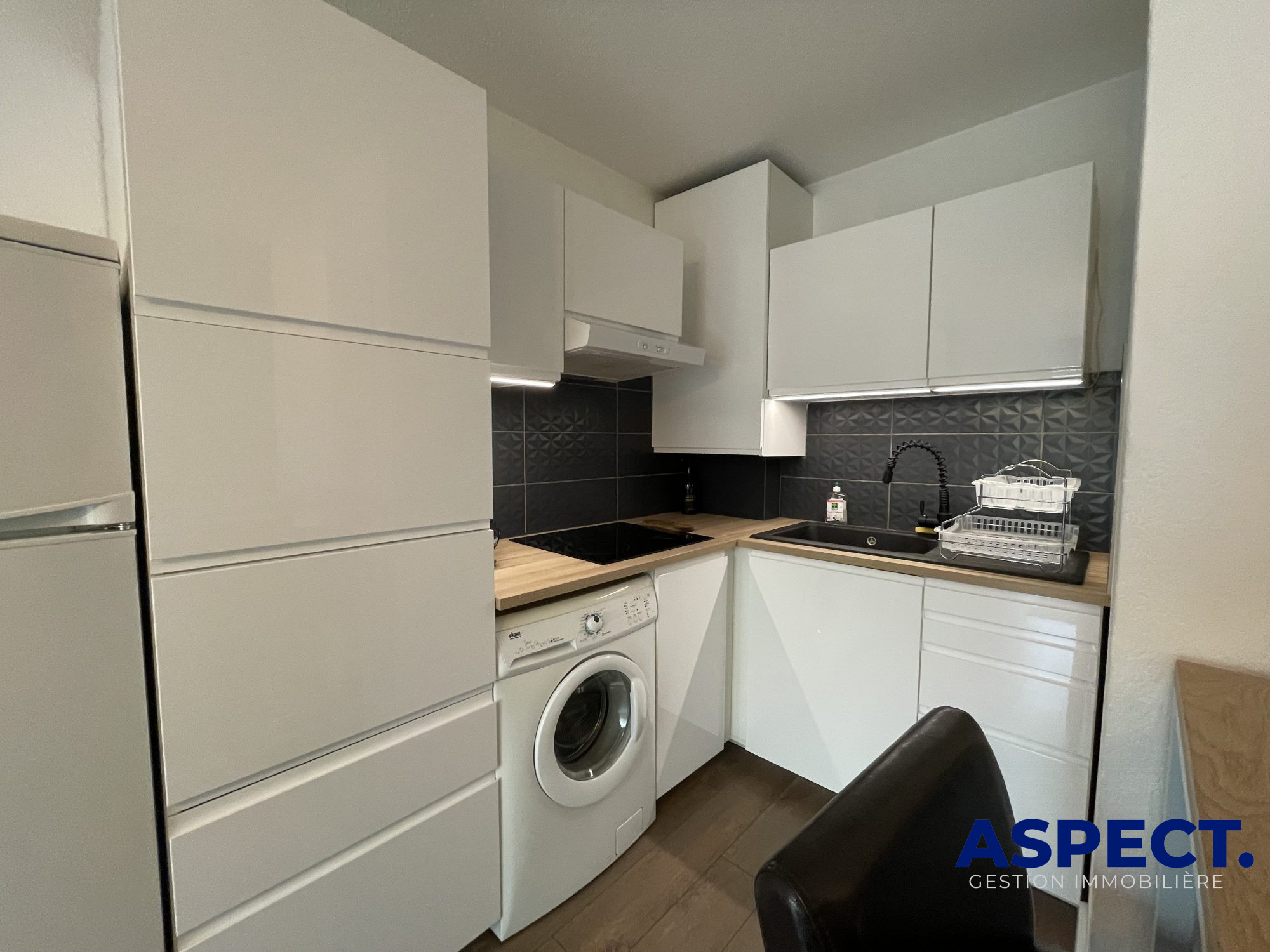 - Cuisine équipée : frigo, hotte, four, plaques de cuisson
