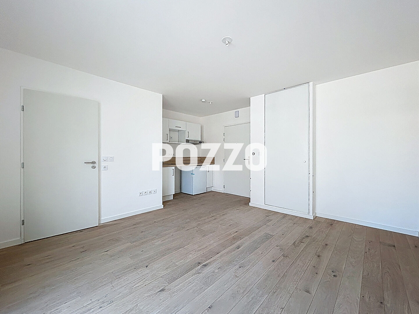 Cet appartement de 24,43m², situé au 1er étage comprend une pièce principale avec une cuisine équipée (plaques, frigo, micro onde), une chambre avec bureau et dressing, ainsi qu'une salle d'eau avec WC.