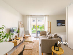 T2 RDJ 46m2 avec un séjour / cuisine ouverte de 24m2, une chambre et une salle d'eau. Terrasse de 8m2 et jardin de 32m2.
