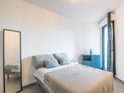 L'appartement est composé d'une pièce à vivre ouverte sur une loggia et avec cuisine équipée, d'une chambre avec rangements bien aménagé, d'une salle d'eau avec sèche serviette et d'un WC séparé.