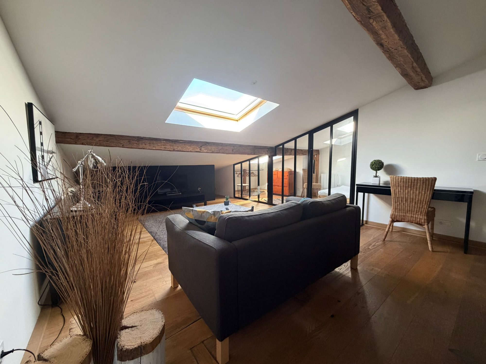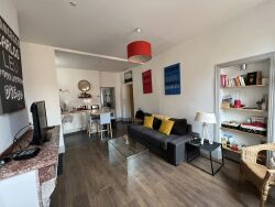 Appartement T2 entièrement meublé comprenant un séjour avec cuisine équipée ouverte, une grande chambre avec rangement, une salle d'eau avec WC.