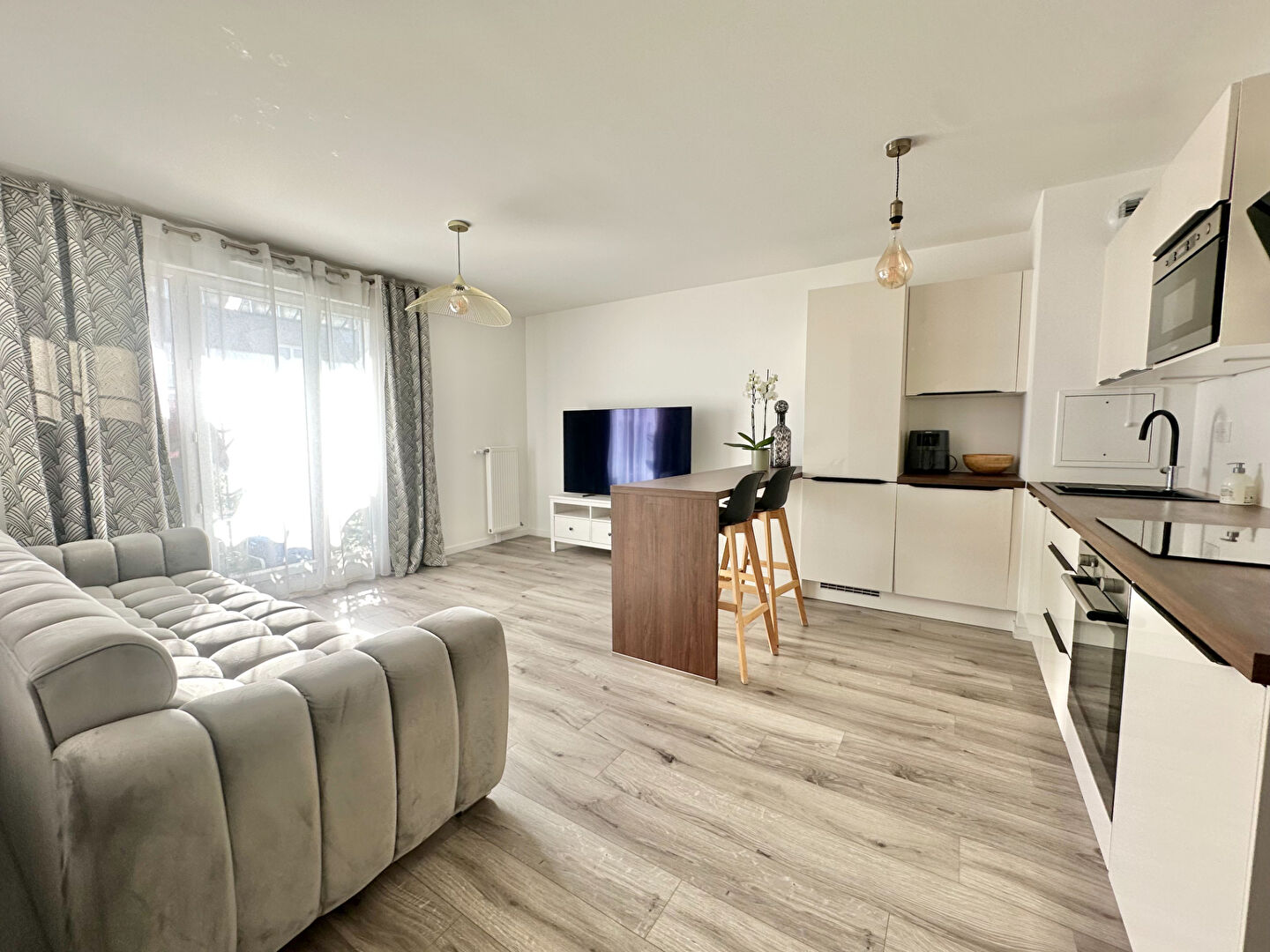Quartier 'Les 4 chemins': au 3ème et dernier étage d'une résidence calme et bien entretenue de 1986, venez découvrir cet appartement 3 pièces en parfait état. Il se compose d'une entrée avec placard, un séjour avec balcon bénéficiant d'une vue dégagée, une cuisine équipée ouverte sur la pièce de vie, un dégagement desservant deux chambres avec rangements, une salle d'eau, une buanderie et WC séparé. Appartement traversant, lumineux et sans vis à vis. Garage en sous-sol.