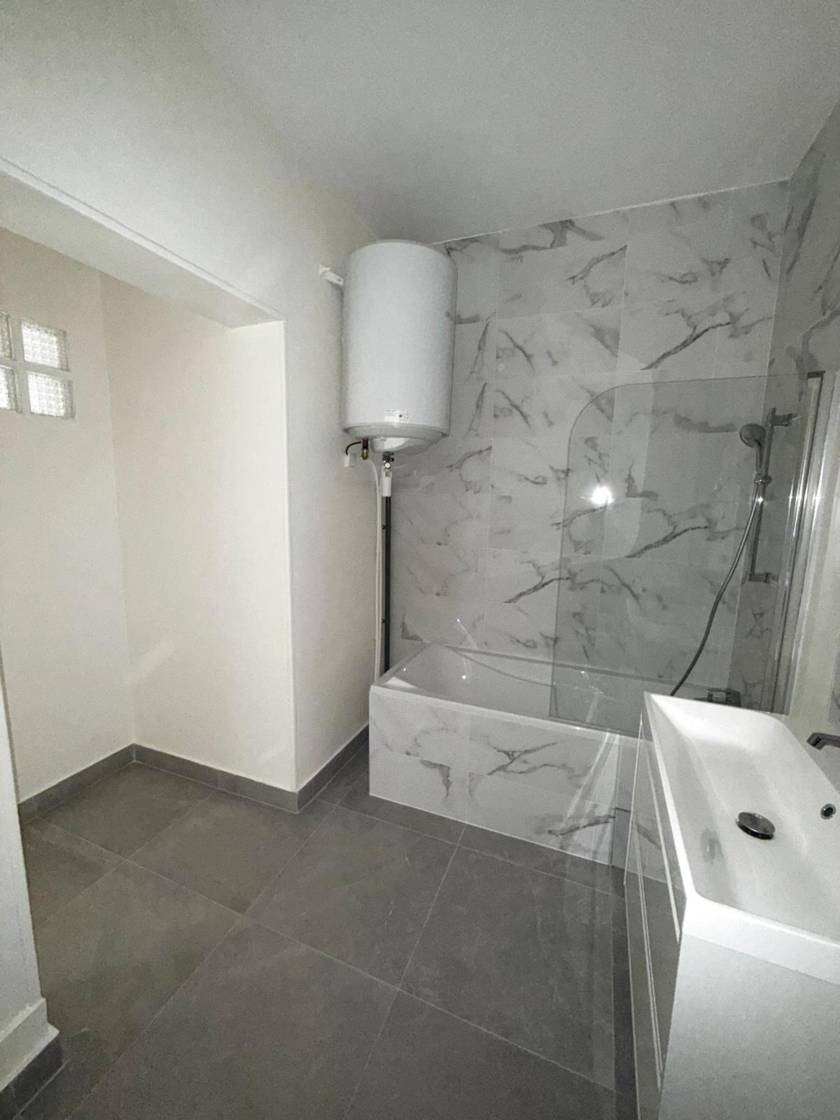 Une salle de bain avec baignoire, WC séparés