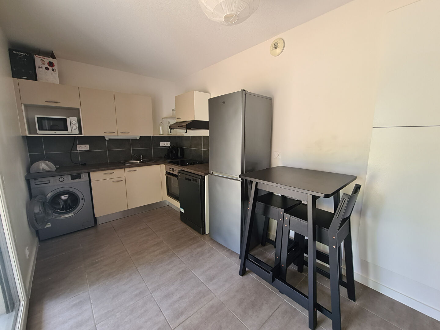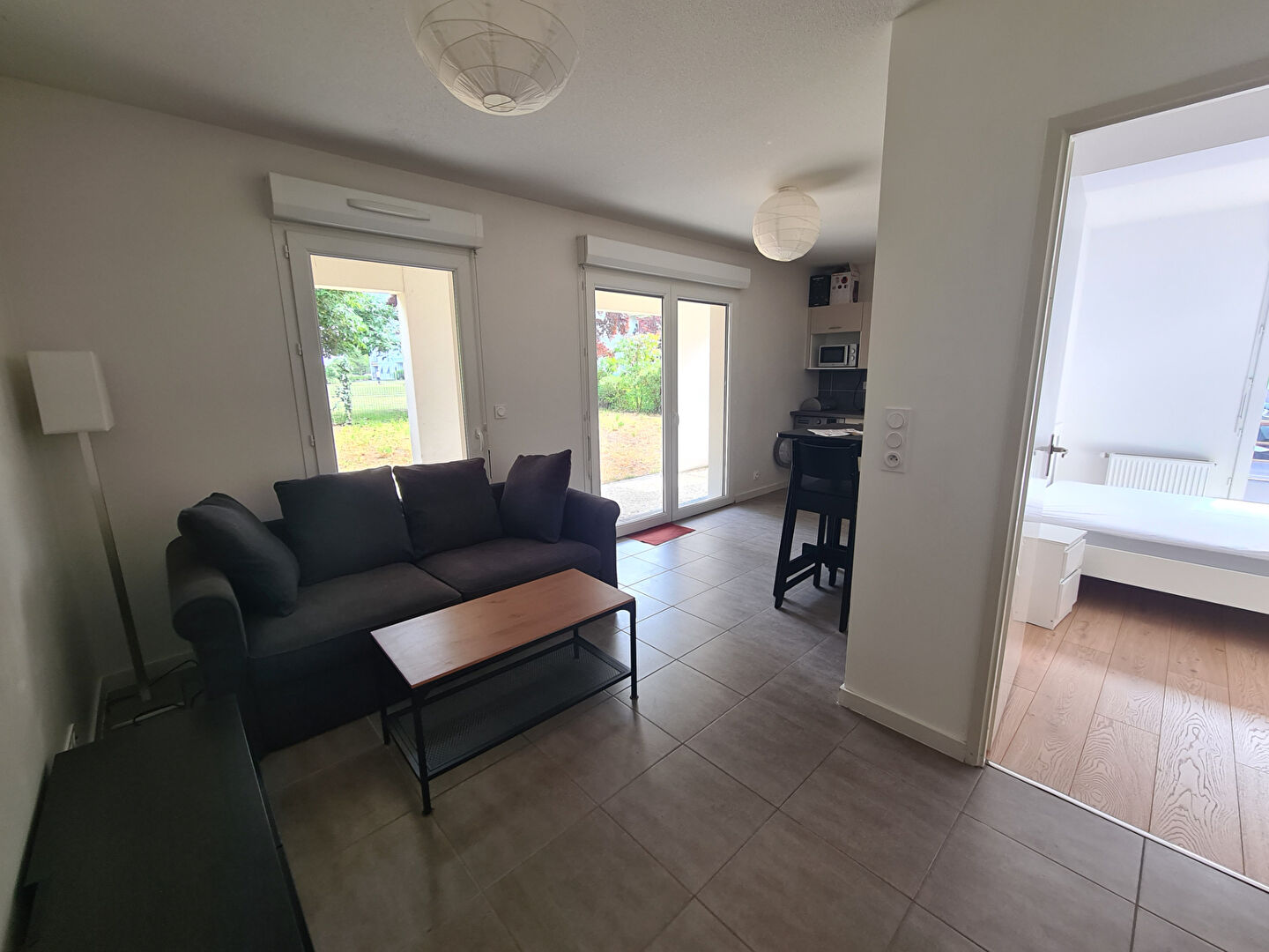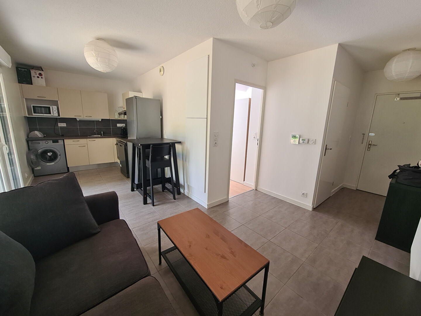 Dans une résidence calme et sécurisée, appartement de T3 comprenant une entrée avec placard, un séjour avec cuisine américaine équipée, deux chambres avec placards, WC séparé, une salle de bain, un balcon.