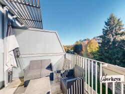 Séjour traversant donnant sur vaste balcon-terrasse de 20m2, exposé sud, sans vis-à-vis direct.