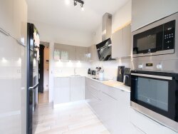 La cuisine équipée et séparée a été refaire en septembre 2020, pour compléter ce bien : 2 chambres de 12 et 12.5m2, une salle d'eau, un wc suspendu séparé et des placards.