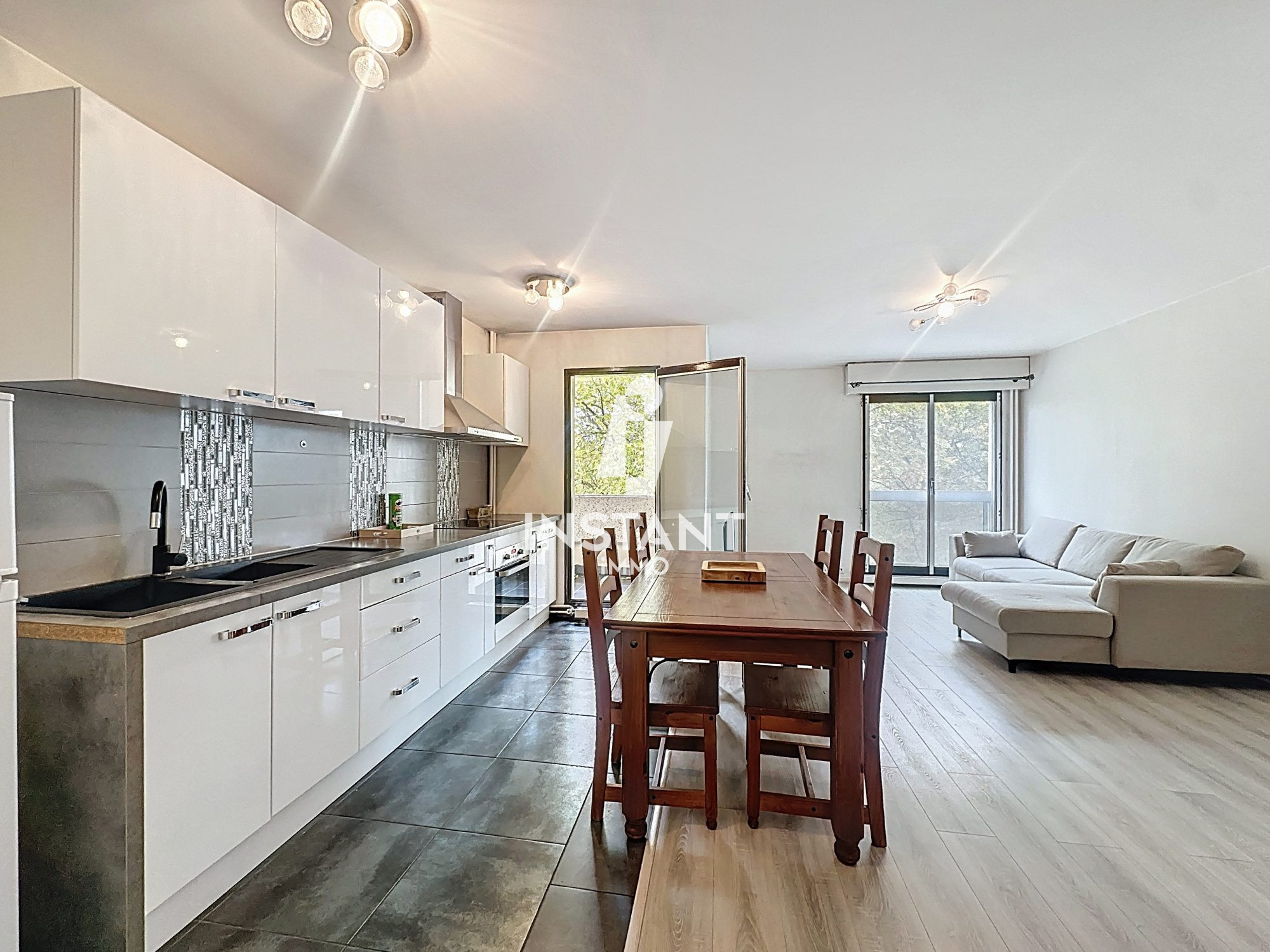 L'appartement se compose d'une entrée, d'une spacieuse pièce de vie de 29 m² ouvrant sur un balcon, d'une cuisine indépendante aménagée et entièrement équipée, d'une salle d'eau, d'un WC séparé, ainsi que de deux belles chambres.