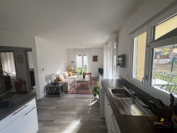 -Une pièce de vie avec cuisine ouverte donnant sur une terrasse de 13m² exposé sud-ouest agrémentée d'un beau jardin de 138m².