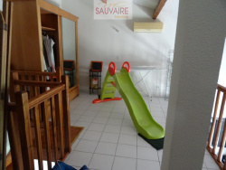 Vous y trouverez un hall d'entrée donnant sur un salon/séjour avec un coin cuisine entièrement équipée, une chambre, une salle d'eau ainsi que des WC séparés. À l'étage, une grande mezzanine peut servir de bureau ou de chambre supplémentaire.