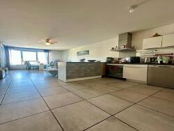 Le bien est situé au 1er étage avec ascenseur et composé comme suit : Une entrée avec rangements, un wc, une salle de bains, une vaste et lumineuse pièce à vivre avec coin cuisine ouverte sur le séjour et deux chambres.
