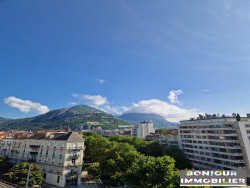 GRENOBLE - 1 avenue de Vizille. T3 de 78.69m2 au 6ème et dernier étage d'une copropriété avec ascenseur. Se composant ainsi : Une grande entrée, un séjour lumineux de 13m2, deux chambres de 13 et 12m2, une cuisine équipée (évier, four, plaques de cuisson, hotte, lave-vaisselle et rangements) et une salle de bain avec WC. Les pièces donnent sur des balcons filants avec une vue panoramique sur les toits de Grenoble. Chauffage, eau chaude et eau froide individuel. Disponible actuellement.