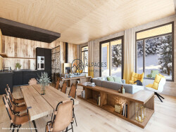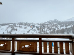 Sur les hauteurs de Vars Les Claux, dans un superbe chalet, appartement au 1er étage d'environ 81m2 se composant d'une cuisine entièrement équipée avec un cellier sur l'arrière de celle-ci, un séjour exposé à l'est donnant sur un balcon, une suite parentale avec wc et salle d'eau, une chambre, un coin nuit fermé, une salle d'eau, wc.