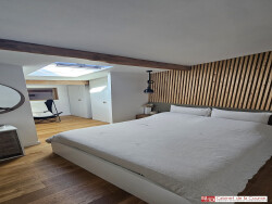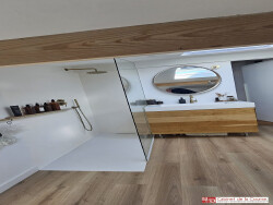 Il est composé d'un séjour traversant de 35 m² avec une grande cuisine américaine comprenant un îlot et entièrement équipée (meubles haut et bas, réfrigérateur, congélateur, plaque induction, four, lave-vaisselle, hotte), d'un coin bureau et WC séparé. A l'étage vous trouverez 2 chambres dont une avec un grand dressing et une salle d'eau.