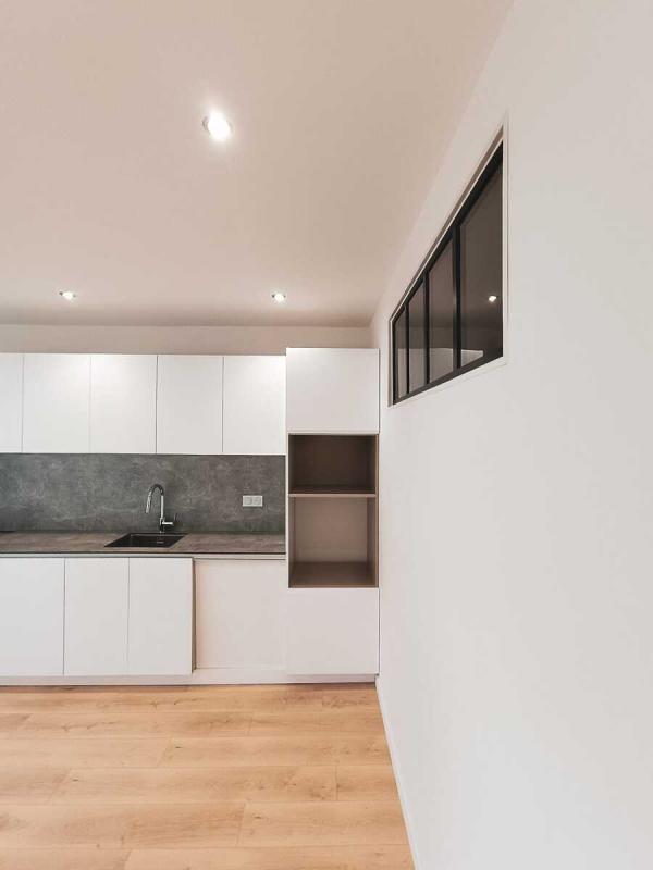 Séjour-cuisine lumineux ouvert sur un balcon de plus de 6 m², idéal pour vos moments de détente