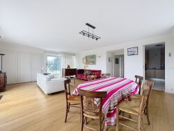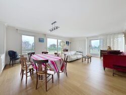 À deux pas du centre ville, très bel appartement d'environ 110m2 baigné de lumière vous proposant, une entrée avec son vestiaire et wc, un espace cellier, un vaste salon séjour ensoleillé d'environ 40m2, une cuisine équipée, un espace parents avec sa salle de bains et un wc, une chambre avec des placards et une salle de douche. Un garage, une place de parking, un local à vélo et 2 balcons avec une vue dégagée viennent compléter ce bien situé à proximité des commodités.