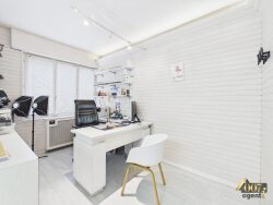 Au 1er étage sur 4 sans ascenseur, l'appartement offre une configuration atypique puisqu'il est actuellement utilisé comme cabinet dentaire.