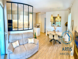 Les finitions de qualité (parquet chêne, travertin) et les nombreux rangements font de cet appartement un lieu pratique et agréable à vivre. Chauffage central au gaz. 2 places de parking + cave complètent ce bien.