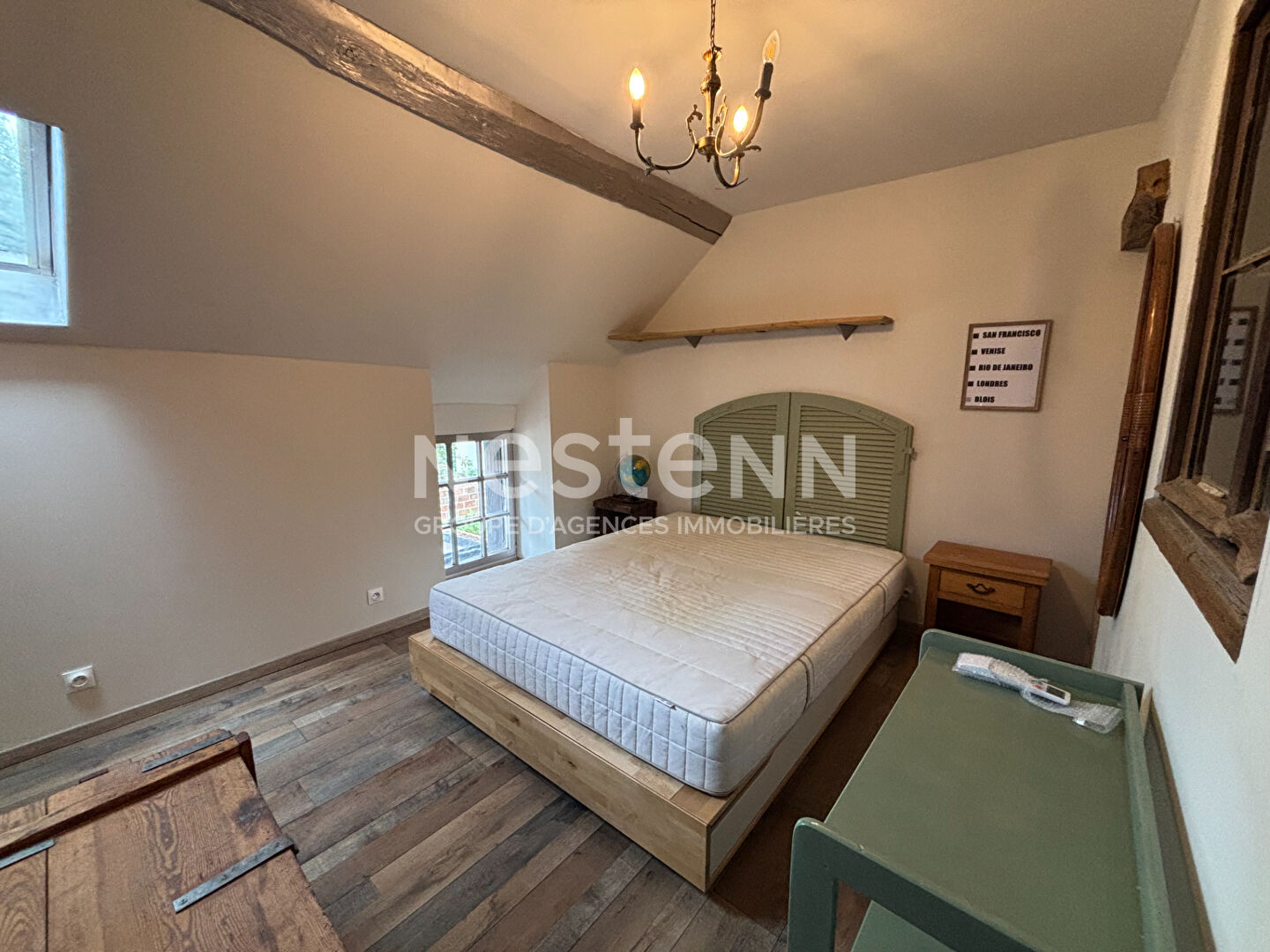 Venez découvrir ce charmant T3, rénové et meublé avec goût, à mi chemin entre le centre-ville, le quartier des écoles et le quartier administratif de Blois, à 10 minutes à pieds de la gare. Au rez-de-chaussée d'une copropriété, celui-ci vous offre : entrée sur pièce à vivre dont une cuisine aménagée et équipée et un coin séjour, wc séparés, salle d'eau, bureau pouvant faire office de petite chambre ainsi qu'une chambre avec dressing. Débarras privatif en face du logement pour stocker le bois. Petit coin terrasse possible, non clôturé, dans la cour commune. Local vélo commun. Jardin commun. Libre dès maintenant. Loyer : 689 euros par mois charges comprises (eau froide, entretien poêle à bois, taxe d'ordures ménagères) Dépôt de garantie : 1310 euros Honoraires de location : 539 euros Pour plus de renseignement, contactez Manon au zéro sept 66 83 73 80 ou l'Agence Nestenn de St Gervais-la-Forêt au zéro deux 54 43 80 35