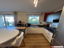 Cet appartement comprenant des prestations de qualité, se compose d'une entrée, un dégagement avec placard, un séjour et une cuisine ouverte équipée (four, plaque de cuisson, hotte, lave-vaisselle et réfrigérateur) donnant sur un balcon/terrasse orientée sud-ouest, une salle de bain avec lave-linge, 2 chambres (placards) dont 1 avec dressing en sus et un w.c séparé.