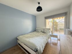 Appartement T3 de 70 m², loué meublé, situé au rez-de-chaussée d'un immeuble bien entretenu. Il se compose d'un grand séjour lumineux, de deux chambres avec placards, d'une cuisine équipée, d'une salle de bain, d'un WC séparé et de deux balcons.