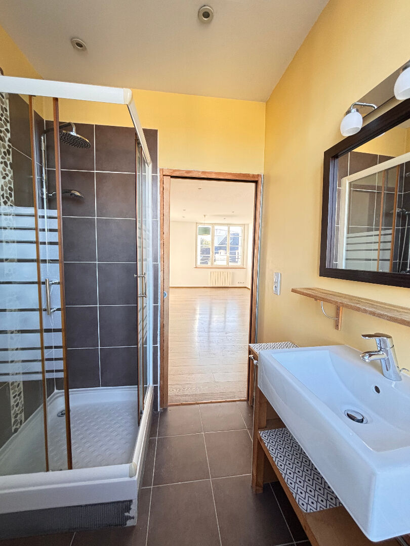 À Quimper, découvrez cet appartement de type T3 situé au 4e et dernier étage d'une résidence sécurisée (interphone et digicode), sans ascenseur. Entièrement rénové, il se compose d'un salon-séjour lumineux, d'une cuisine aménagée et équipée, de deux chambres avec placards, d'un WC indépendant et d'une salle d'eau.